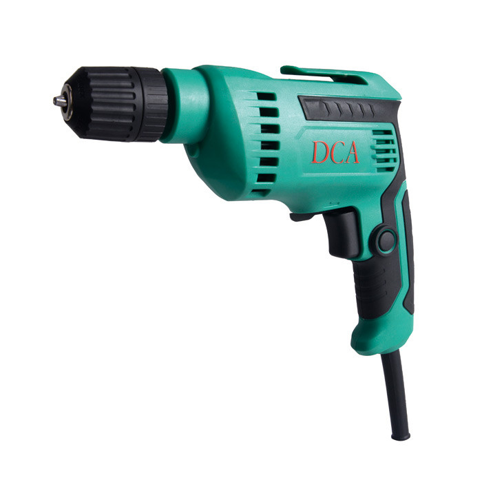 دریل نیمه صنعتی یا دریل خانگی مدل AJZ10-10K از برند دی سی ای-DCA ساخت کشور چین می باشد. دریل نامبرده محصولی با کیفیت از این برند است که برای انجام کارهای سبک و نیمه سنگین کاربرد دارد. این محصول با استفاده از برق شهری راه اندازی میشود و برای سوراخکاری انواع سطوح فلزی، چوبی مناسب است. این دستگاه مجهز به قفل کن سوئیچ برای کار طولانی مدت توسط کاربر می باشد. مشخصه دیگر این محصول قابلیت کنترل سرعت آن می باشد که بدین وسیله می توان سرعت دستگاه را در شرایط مختلف کاری کم و زیاد کرد که باعث می شود فرد تسلط بیشتری با توجه به فعالیت خود داشته باشد.