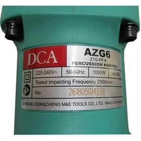 چکش تخریب 6/8 کیلویی دی سی ای AZG6 مجهز به اورینگ های فلزی و کائوچویی دوبل درسیستم ضربه زن و مکانیزم حرفه ای سیلندر و پیستون برای هرچه قوی تر شدن ضربات است. همچنین دارای قفل کن سوئیچ برای کارهای طولانی و ممتد و کلاچ ایمنی جهت عملکرد بهتر حین کار است. دسته این محصول با طراحی ارگونومیک و مقاومت در برابر تعریق ساخته شده است تا کاربران بتوانند برای مدت زمان طولانی و با راحتی از دستگاه استفاده کنند.