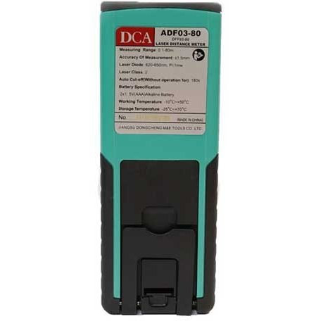 متر لیزری دی سی ای مدل ADF04-80 در تمامی مصارف عمرانی ، تاسیسات ، مهندسی و کارگاهی کاربرد دارد. این متر قابلیت استفاده در دمای 0 تا 40 درجه را دارا میباشد. از مشخصات کاربردی این دستگاه میتوان به لیزر class 2، صفحه نمایش دیجیتالی سه خطی،قابلیت ذخیره سازی تا 99 داده ، قابلیت اندازه گیری بر اساس متر ، فوت و اینچ ، انجام محاسبات ریاضی ( مساحت، حجم و روابط فیثاغورث ) و همچنین قابلیت اندازه گیری پشت سر هم اشاره کرد.