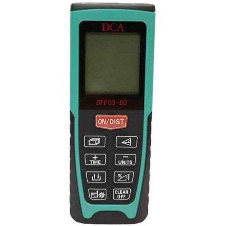 متر لیزری دی سی ای مدل ADF04-80 سرعت نور در سطح زمین را ثابت فرض کرده و سپس فاصله را محاسبه می کند.شما تنها با فشردن یک دکمه یک پالس لیزری به محل موردنظر ارسال می کنید و سپس مدت زمانی را که طول می کشد تا یک پرتو لیزر به محل موردنظر برخورد کرده و بازگردد را اندازه گیری میکند. متر لیزری DCA اندازه گیری فاصله را با دقت بسیار بالایی انجام داده و در هر 10 متر تنها به میزان 1.5 میلیمتر احتمال خطا دارد.