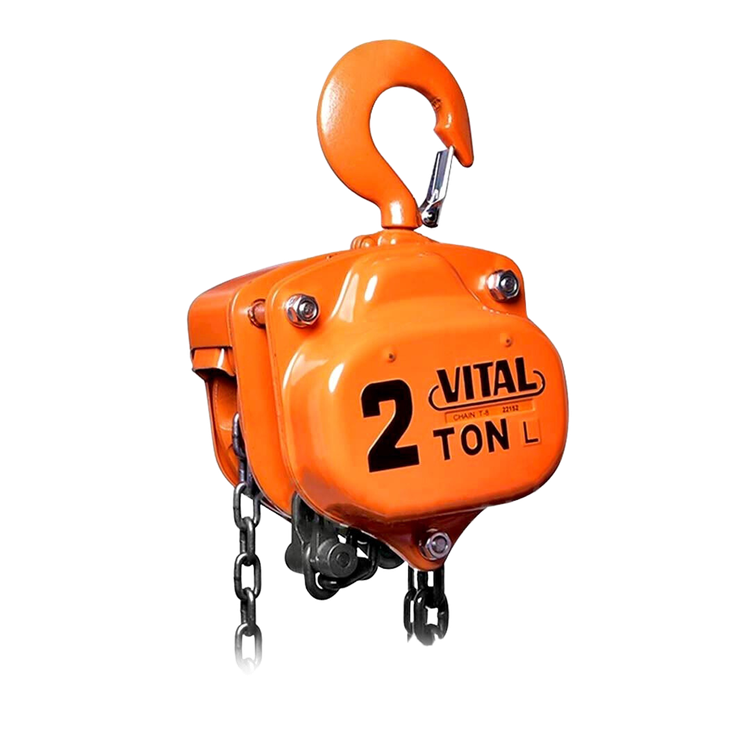 جرثقیل دستی 2 تن ویتال از دستگاه لیفتینگ کاربردی در جابجایی و بلند کردن اجسام سنگین بدون نیاز به منبع برق می باشد. این جرثقیل دستی با طول زنجیر 3 متر و ظرفیت تحمل بار 2 تن جابجایی اجسام را به راحتی انجام می دهد. جرثقیل دستی سقفی ویتال از فولاد گرید 80 ضد زنگ تولید، و در برابر انواع ضربه، گرما، سرما و زنگ خوردگی مقاوم است. سیستم چرخش 360 درجه هوک بالا و پایین و قابلیت اتصال به ترولی جرثقیل (ریل جرثقیل) این امکان را برای کاربر فراهم می کند که جرثقیل را در مسافت های متفاوت در جهت افقی جابجا کند. در ساختمان جرثقیل دستی دو زنجیر با جنس متفاوت وجود دارد.