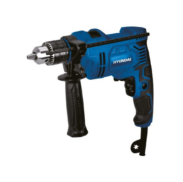 دریل برقی 810 وات 13 میلیمتری هیوندای مدل HP-8510 دارای موتور قدرتمند با توان 710 و سرعت بی باری آن 2800 دور بر دقیقه است. سایز سه نظام آن 13 میلیمتر و نوع آن آچاری است؛ که به کمک آن می توانیم در اندازه ها و قطر های دلخواه، کار سوراخکاری را انجام دهیم. دریل فوق دارای موتور پرقدرت مس است که در توان این دستگاه موثر و زسانایی خوبی را به وجود میآورد. باتوجه به سیم پیچ نمام مس آن قدرت تحمل حرارت بسیار بالا را دارد که از آن برای ایجاد رسانایی بالا و به وجود آمدن میدان مغناطیسی قوی استفاده می شود.یک مزیت بسیار مهم این دستگاه برخوردای از کلید های ضدغبار و بلبرینگها و کلید کلید پاور است که دستگاه را در برابر ذرات معلقی که براثر دریل کاری به وجود میآید محافظت میکند مه خود سبب طول عمر دستگاه میشود. این دستگاه دارای دیمر است که امکان تنظیم ولتاژ و در نتیجه آن امکان کنترل سرعت دستگاه را ایجاد می کند. و همچنین دارای دکمه دیمر است و رنگ آن قرمز و روی کلید روشن و خاموش به صورت گردان می باشد. یکی از ویژگی هایی که مورد توجه مصرفکنندگان قرار میگیره این است که با استفاده از این دریل روی چوب سوراخ تا عمق 25 میلیمتر و روی بتن و فلز سوراخ تا عمق 10 میلیمتر میتوان ایجاد کرد.سیستم تغییر جهت و قفل سوئیچی که روی دریل فوق تعبیه شده به این منظور است که در زمان هایی که دریل گیر میکند میتوان با فشردن دکمه تغییر جهت و چرخش معکوس دریل را از داخل سوراخ بیرون بکشیم. قفل سوئیچی که روی آن قرارگرفته به منزله این است که در مدت زمان زیادی بدون فشار دادن کلید سرعت، از دریل استفاده کند.