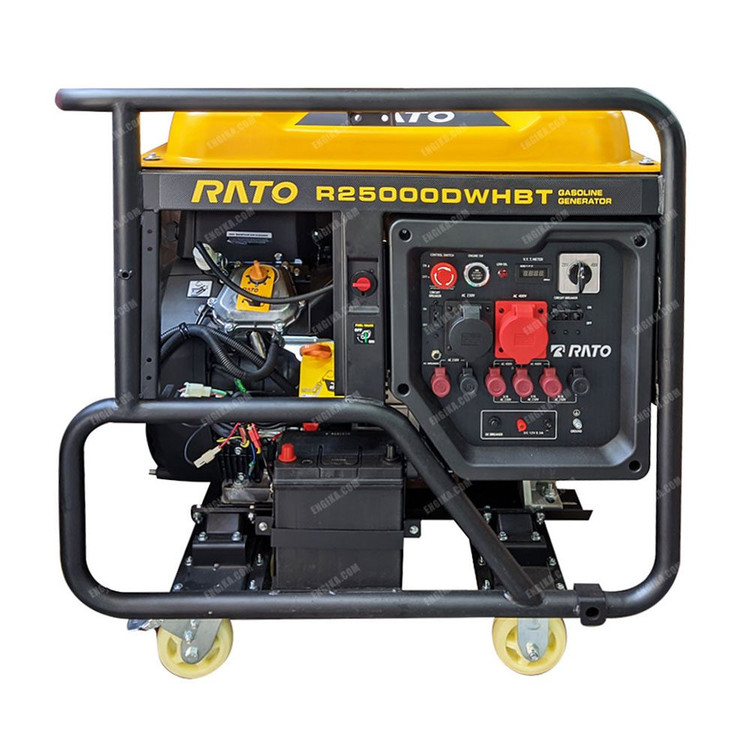 موتور برق راتو مدل R-25000-WHBT مجهز به یک موتور حجیم و قدرتمند 1000 سی سی (دارای سوپاپ دود و هوا) است و با سوخت بنزین کار می کند؛ این موتور نیرومند نیروی لازم ژنراتور 17000 واتی دستگاه را تامین میکند. از طرفی یک کیت AVR در این ژنراتور تعبیه شده که کا ر آن تثبیت ولتاژ خروجی است به اینصورت که برق خروجی دستگاه ۲۳۰ ولت ثابت است و از خطرات ناشی از نوسانات برق جلوگیری می شود.